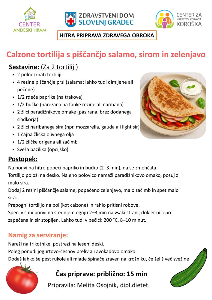 Tortilja s salamo, sirom in zelenjavo