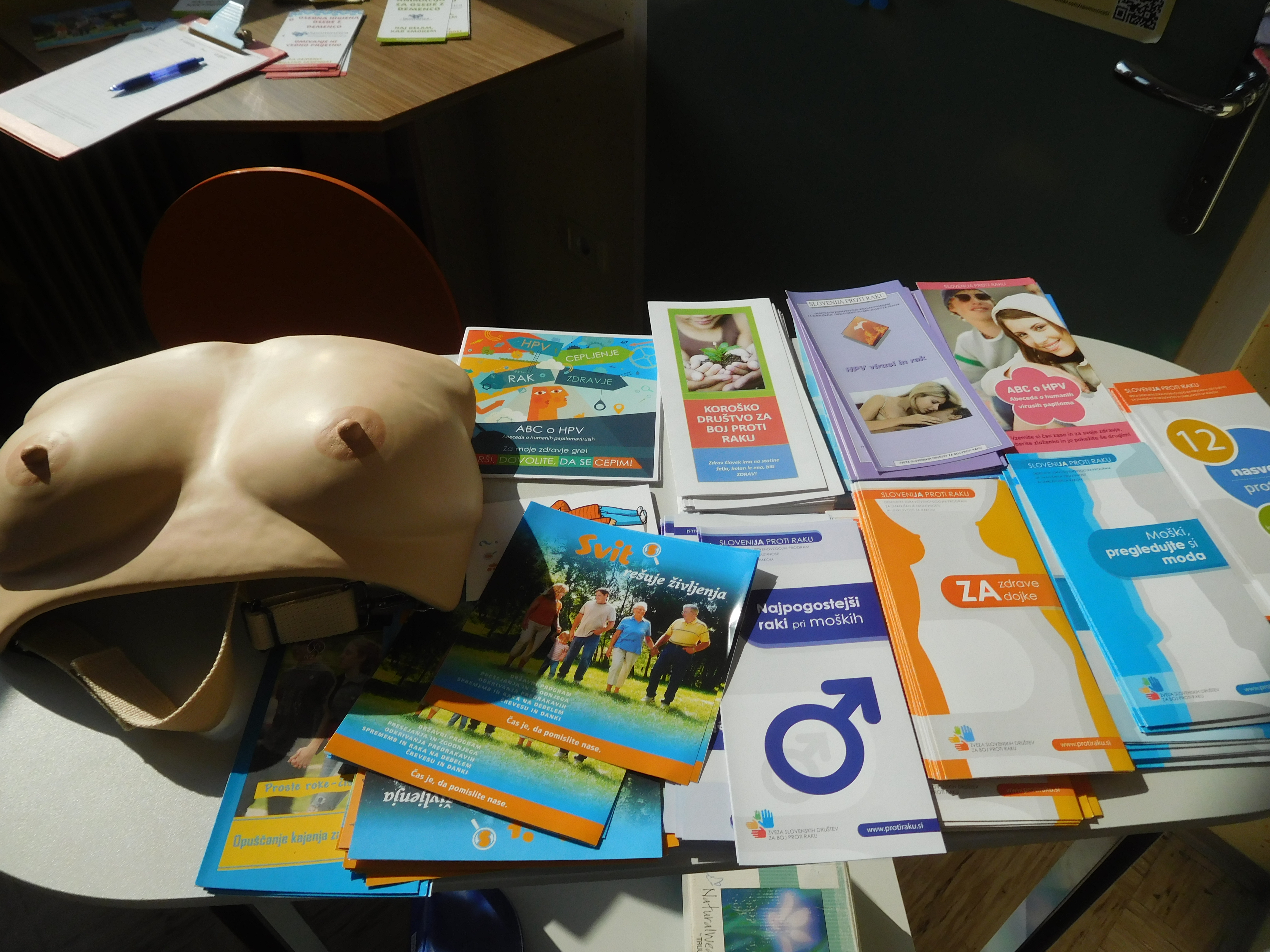 Obiskovalcem Zdravstvenega doma Slovenj Gradec in članom Društva upokojencev Mislinja smo 6. 3. 2019 podrobneje predstavljali tri glavne presejalne programe v Sloveniji €“ DORA, ZORA in SVIT€“ ter jih seznanili z ostalimi dejavnostmi za preprečevanje različnih vrst raka. Postopek preventivnega pregledovanja dojk in mod so lahko udeleženci preizkusili tudi na modelu. Udeležencem smo merili tudi krvni tlak.