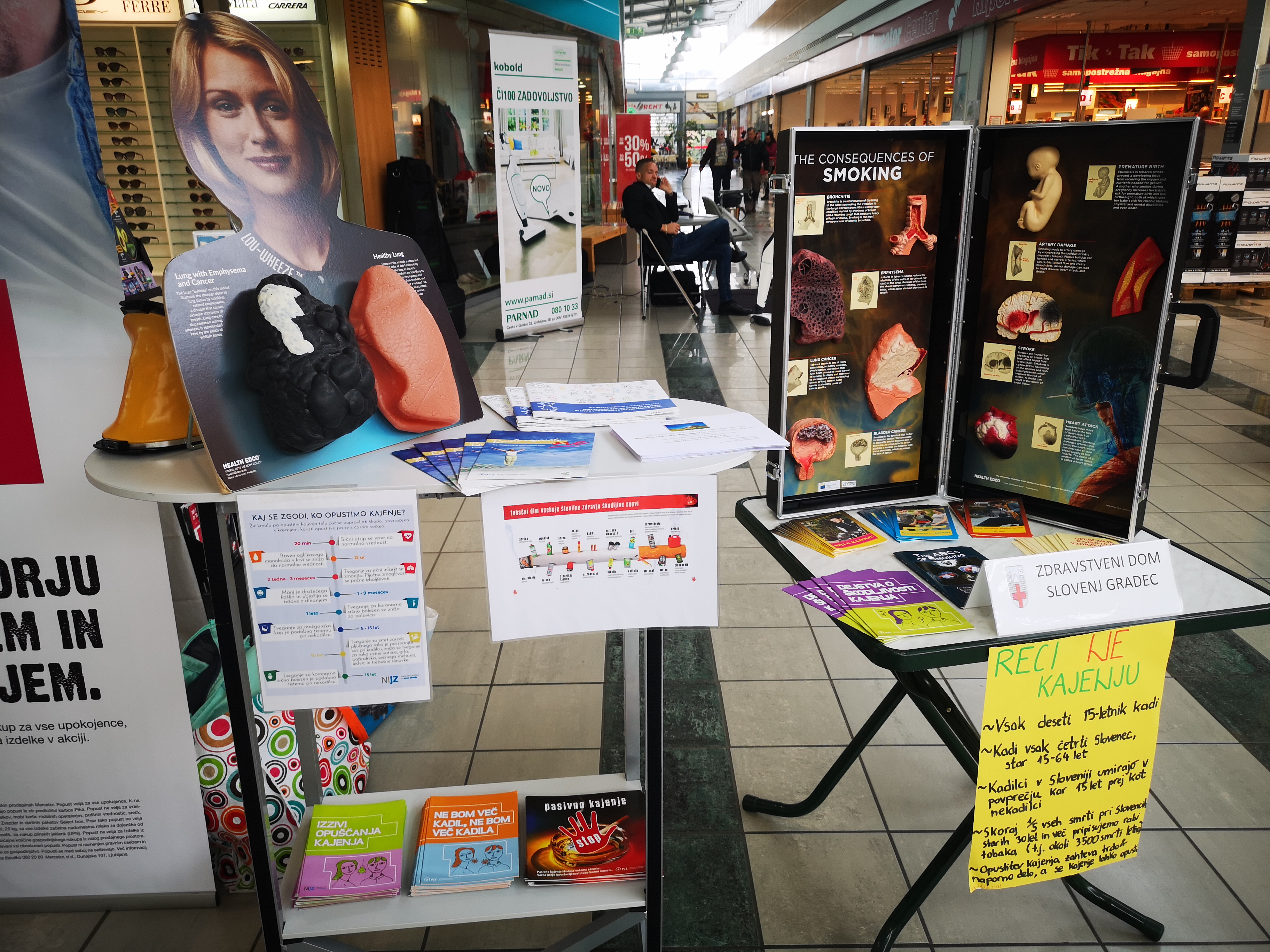 Mimoidoči na vseh štirih lokacijah so si lahko ogledali nov model pljuč kadilca in nekadilca, tiste, ki kadijo, pa smo povabili tudi v naše delavnice o opuščanju kajenja.