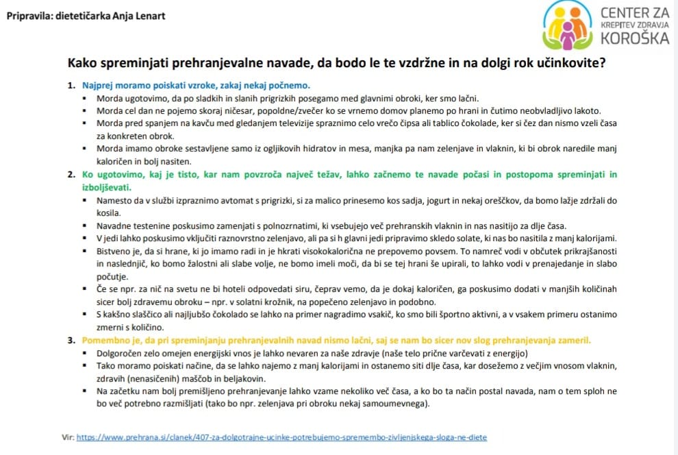 Kako spreminjati prehranjevalne navade?