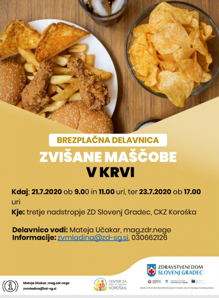 Vabljeni v delavnico o zvišanih maščobah v krvi. Pijave na delavnico so mogoče do vključno 20. 7. 2020 na tel. številki 030662126 ali preko emaila zvmladina@zd-sg.si.