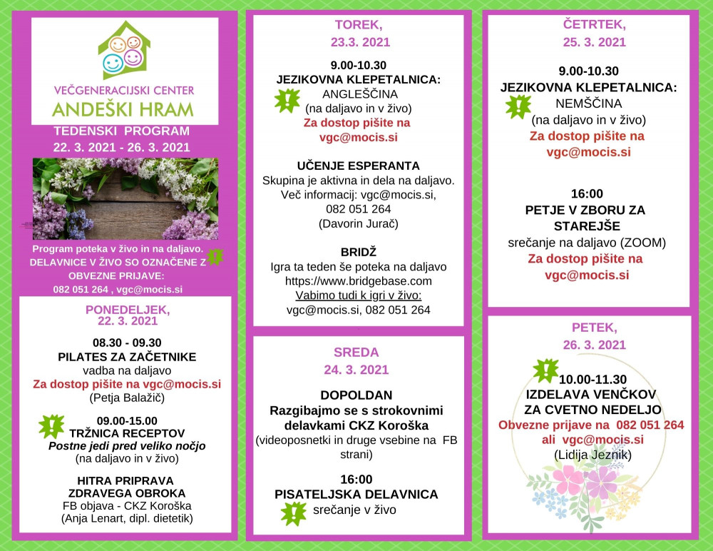 vsako 1. in 3. sredo v VGC Andeški hram (od 8.30 do 9.30)