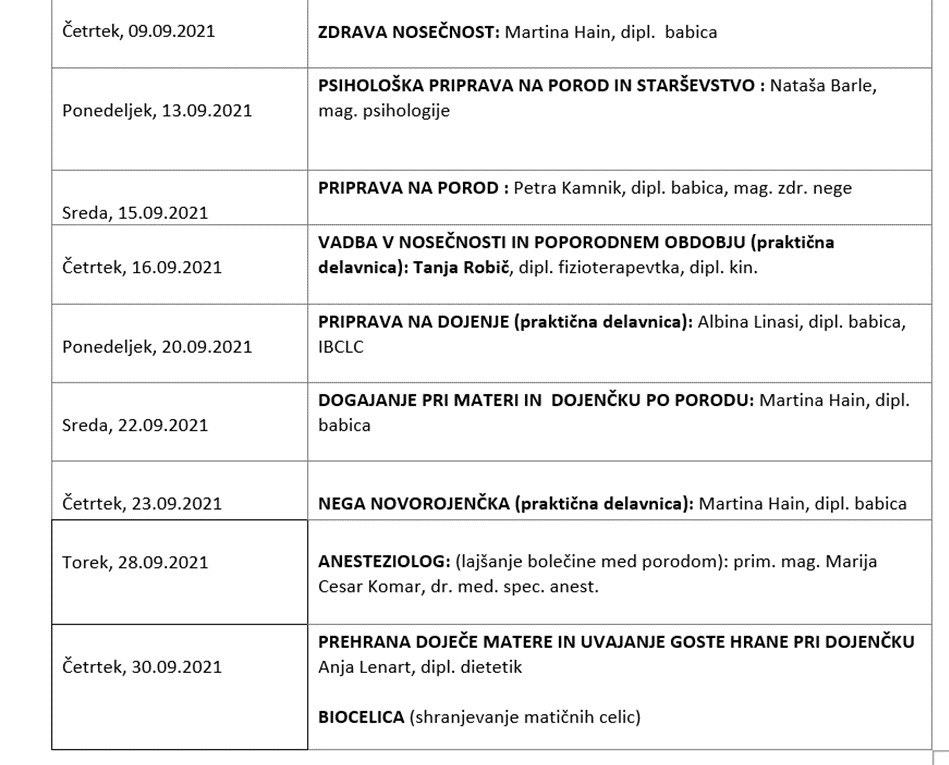 Priprava na porod in starševstvo - september