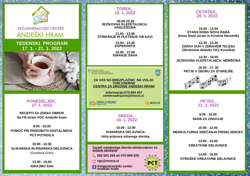 vsako 1. in 3. sredo v VGC Andeški hram (od 8.30 do 9.30)