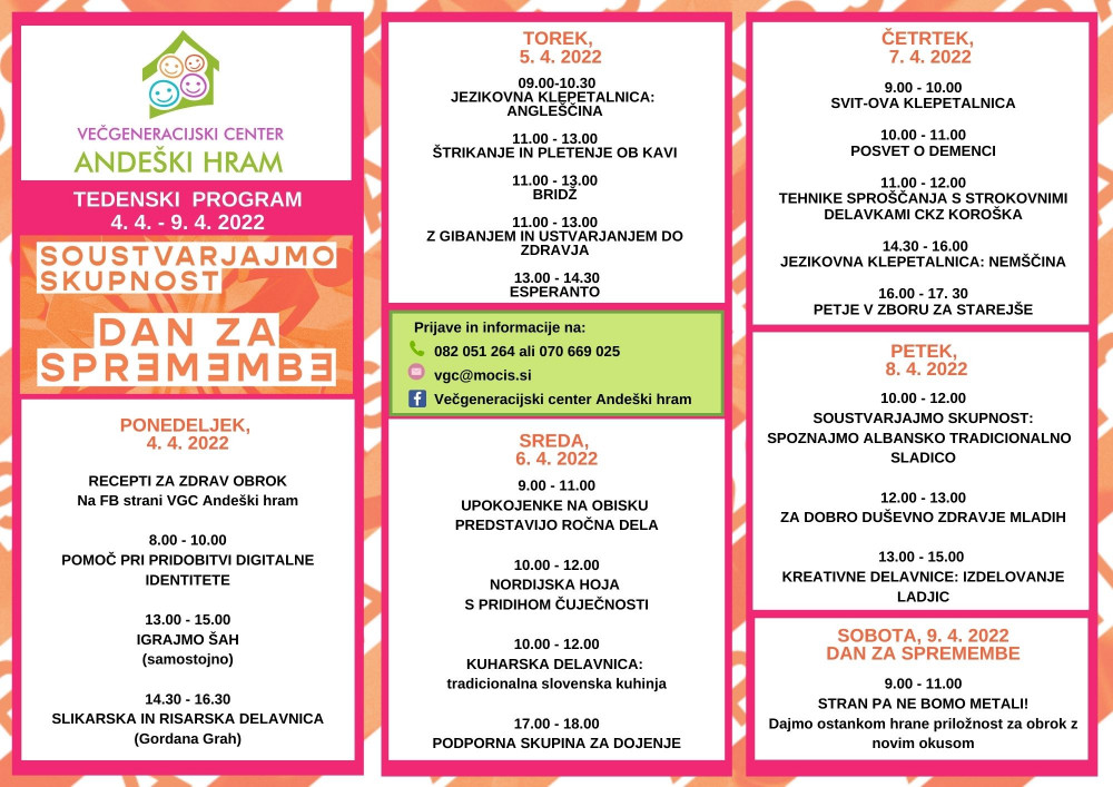vsako 1. in 3. sredo v VGC Andeški hram (od 8.30 do 9.30)
