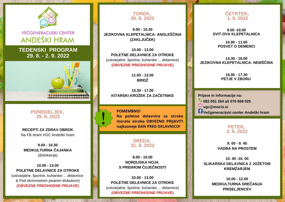 vsako 1. in 3. sredo v VGC Andeški hram (od 8.30 do 9.30)