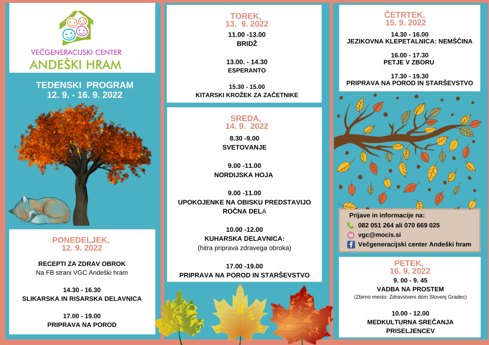 Tedenski spored Andeški hram 12.9. - 16.9.2022