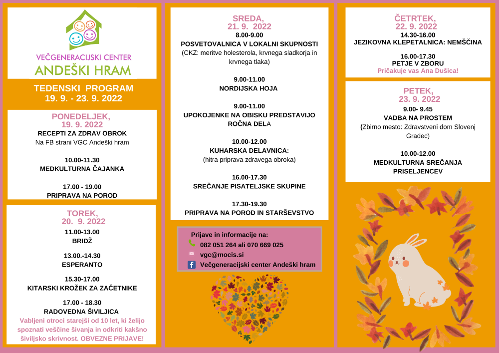 Tedenski spored Andeški hram 19.9. - 23.9.2022