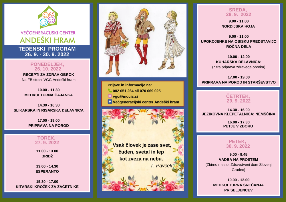 Tedenski spored Andeški hram 29.9 do 30.9.2022