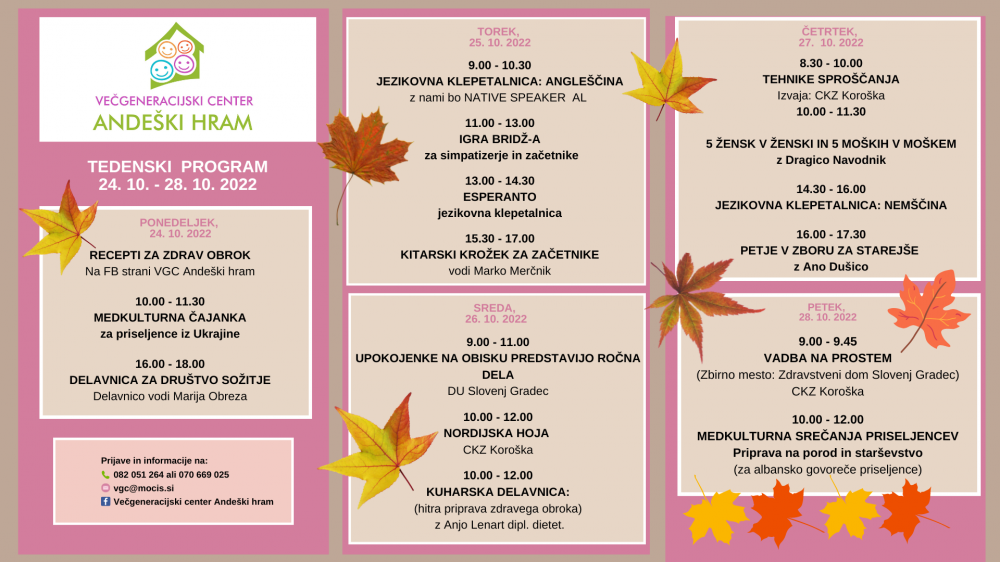 Tedenski spored VGC Andeški hram 24.10. - 28.10.2022