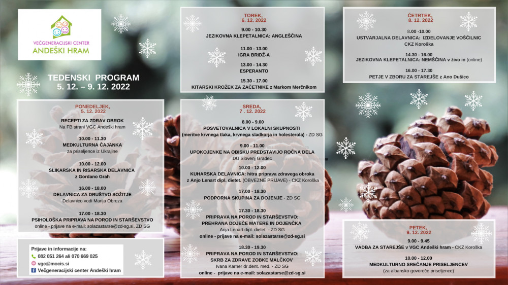 Tedenski spored VGC Andeški hram 5.12. - 9.12.2022