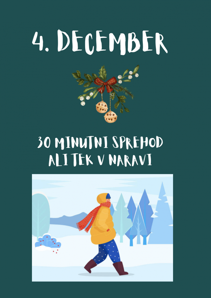 Nedelja je namenjena gibanju na svežem zraku, zato si izberite svojo najljubšo aktivnost €“ sprehod/tek in se ob tem sprostite. Če greste na sprehod, poskušajte doseči vsaj 10.000 korakov.