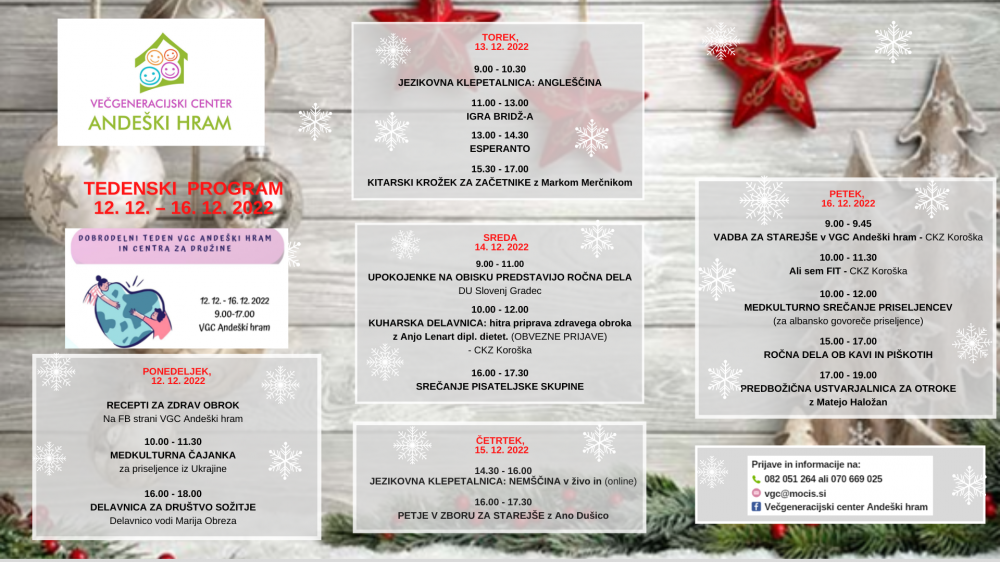 Tedenski spored VGC Andeški hram 12.12. - 16.12.2022