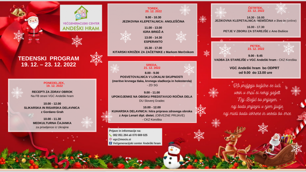 Tedenski spored VGC Andeški hram 19.12. - 23.12.2022