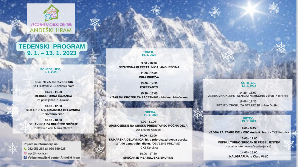 Tedenski spored VGC Andeški hram 9.1. - 13.1.2023