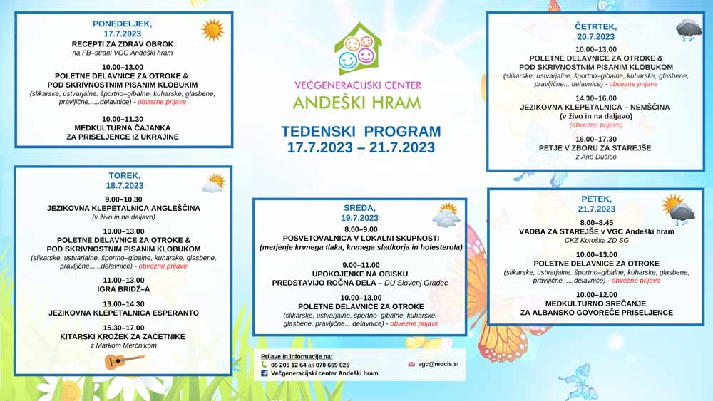 TEDENSKI PROGRAM VGC ANDEŠKI HRAM od 17.7.2023 do 21.7.2023