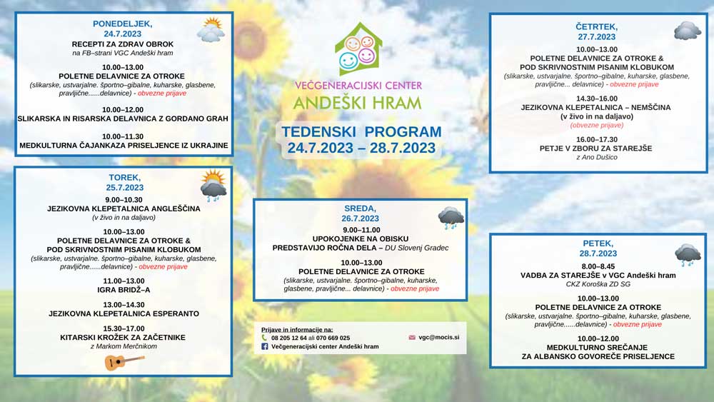 TEDENSKI PROGRAM VGC ANDEŠKI HRAM od 24.7.2023 do 28.7.2023