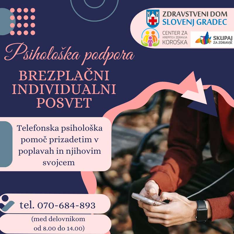 Telefonska psihološka pomoč prizadetim v poplavah in njihovim svojcem na tel: 070 684 893