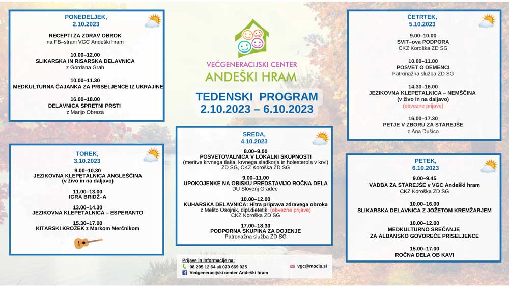 TEDENSKI PROGRAM VGC ANDEŠKI HRAM od 2.10.2023 do 6.10.2023