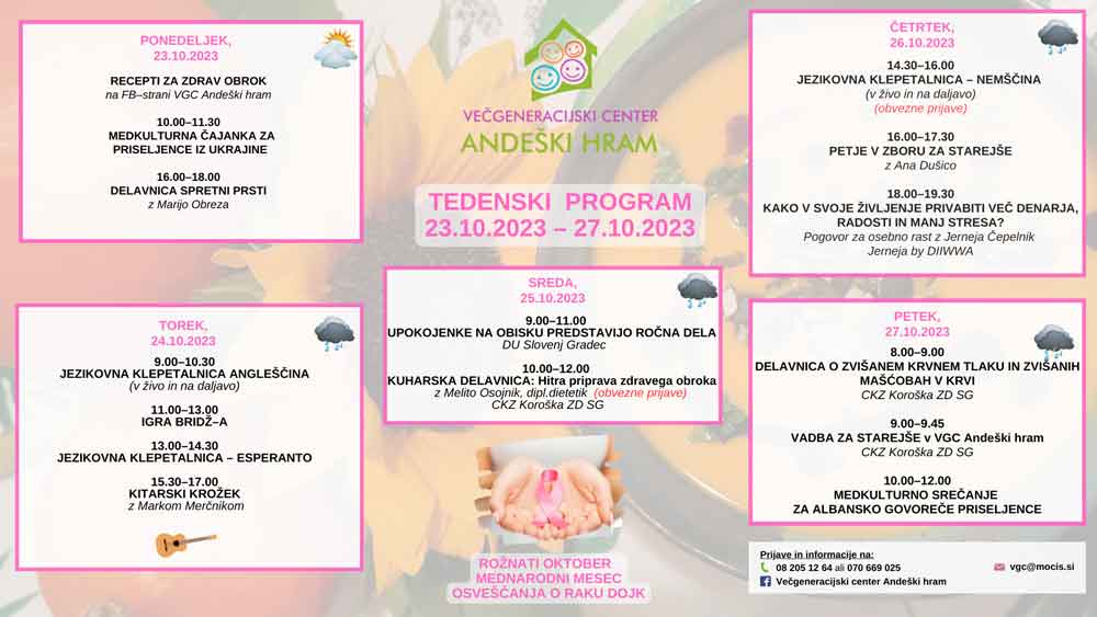 TEDENSKI PROGRAM VGC ANDEŠKI HRAM od 23.10.2023 do 27.10.2023