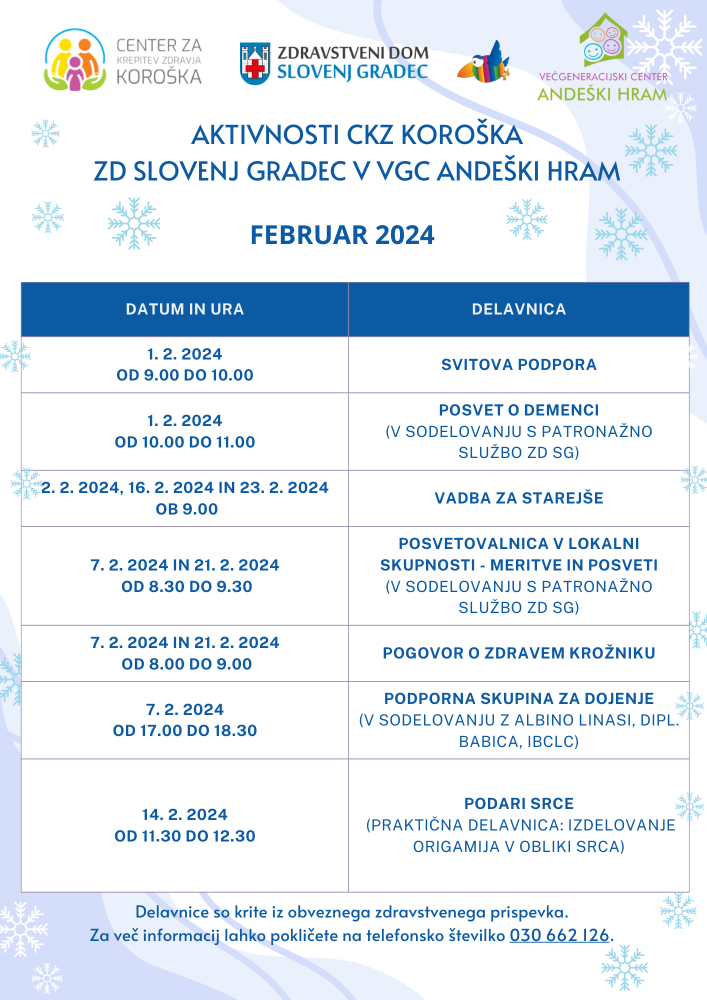 Individualni posveti s strokovnimi sodelavkami CKZ v prostorih CKZ (po predhodnem telefonskem dogovoru na številko 030 662 126):