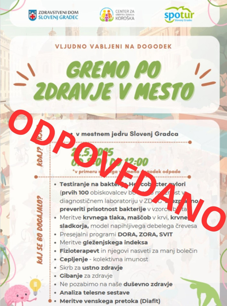 Vabilo: Gremo po zdravje v mesto - ODPOVEDANO